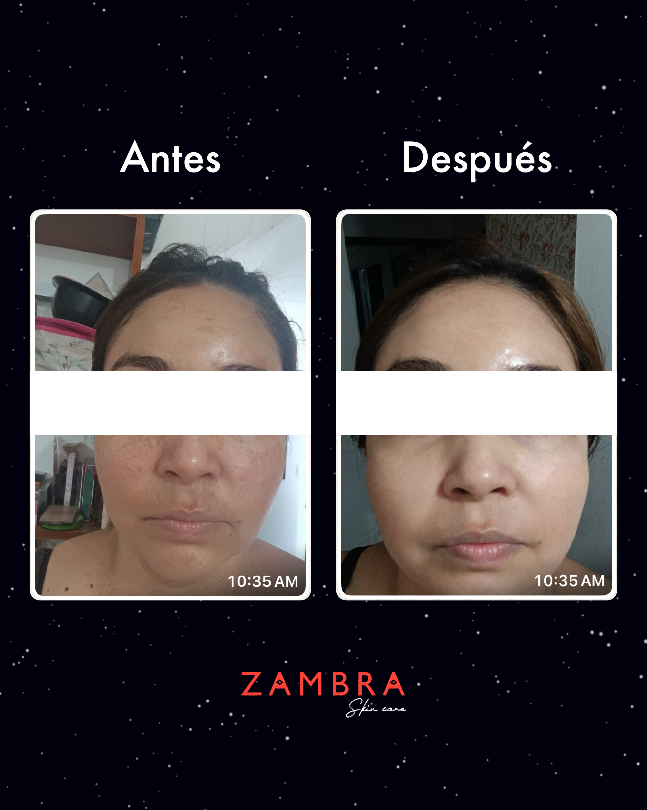 En esta imagen puedes ver cómo su piel luce mucho más luminosa, uniforme y sin manchas visibles.
